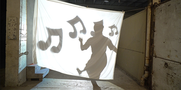 behind with their dancing shoes and sheet music. The irony of singing and dancing