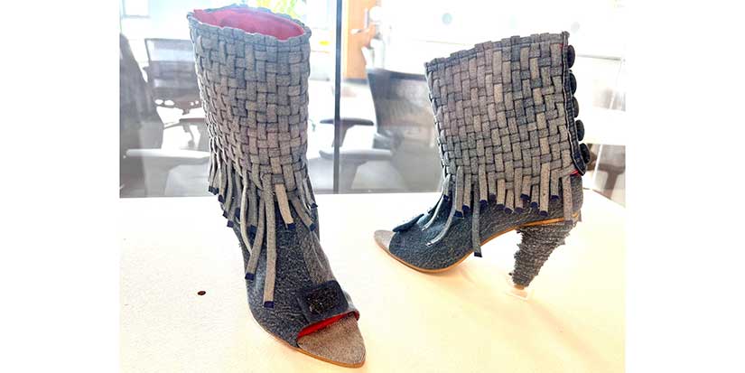 The Kwantlen Polytechnic University (KPU) student has designed elegant high-heeled shoes using old denim, winning the 2023 Upcycled Design Competition hosted by KPU's Wilson School of Design (WSD).