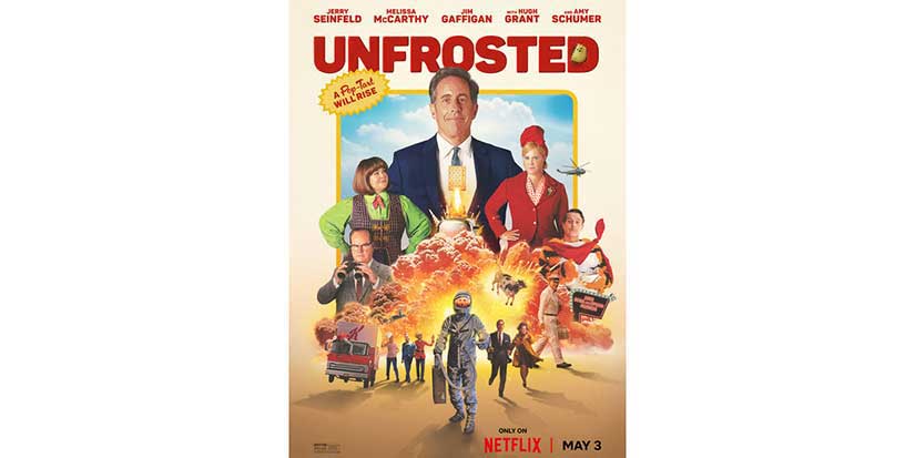 Jerry Seinfeld is back and leading a comedic all-star cast in the new Netflix movie, Unfrosted. Co-written and directed by Seinfeld, the film takes place in Michigan in the early 1960s. Kellogg’s and Post, even then, giants in the breakfast world and sworn enemies, fight it out in a race to see who can create a pastry that will win over millions of consumers and change breakfast forever. The movie idea came from Seinfeld’s legendary comedic bit on Pop Tarts (very funny, look it up online), and the movie is billed as “tale of ambition, betrayal, sugar, and menacing milkmen.” The cast includes Melissa McCarthy, Jim Gaffigan, Hugh Grant, Amy Schumer, Bill Burr, Daniel Levy, James Marsden, Sarah Cooper, and Fred Armisen. Unfrosted is available on Netflix starting May 3. netflix.com