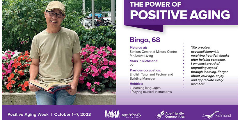 The City of Richmond celebrates Positive Aging Week every year by showcasing positive images of local seniors to reduce ageism in the community. Here are two stories of inspiration. National Seniors Day event is on Oct. 1, 2024.