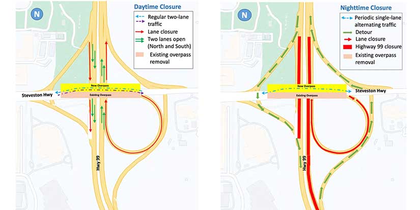 Highway 99 traffic pattern will change for Steveston crossing removal