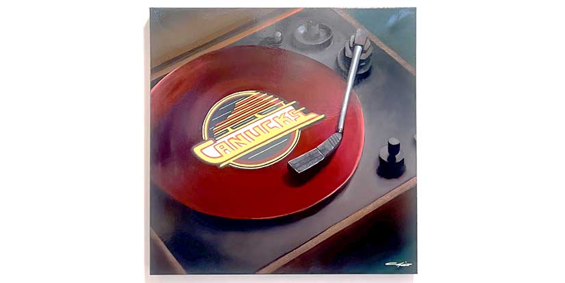 Cecilia Heit, the up and coming artist, first came to our attention when we saw her painting entitled, The Canucks LP. “It was a collaborative effort born during a visit to a record store with my father,” Heit tells us when we visited her studio, “and he suggested a unique concept incorporating the Canucks logo onto a record and transforming the record player’s needle arm into a hockey stick.” The end result: a finished piece that is so distinctive that even the print shop staff adopted the name The Canucks LP, when providing updates via email and voicemail (and take note, Canuck fans, the painting is for sale). Originally from Edmonton, Heit is a self-taught artist whose passion for art ignited at the age of 13 when she began experimenting with makeup and nail polish. “From there, it continued as friends sought my creative skills to make them something,” she says, “ which gave me the unique opportunity to pursue my passion while bringing others’ visions to life.” Judging by the various pieces she showed us, Heit is confident in experimenting with various styles and mediums, and although her finished work prominently features oil and acrylic paintings, she is also skillful in sculpting and watercolour. That diversity shows in two other works we viewed: Grandpa’s Cabin, her first oil painting, depicting a Shuswaps cabin that has deep connections to her family history; and Planting a Seed, a large, customized, plant pot.“ After seeing my work at a mutual friend’s house, a client arranged for a tree and pot to be delivered to my studio,” Heit tells us, “and from a range of options including the client’s favorite music festival, travel, watches, and a nod to his work ethic, I chose the most visually compelling elements to create this personalized piece.” More at cecmadeit.com