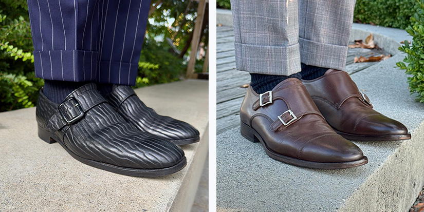 Another great dress shoe style that can really make your suit choice look that much sharper are to add the Monkstrap shoes. They are a dress shoe with no laces but designed with a buckle strap instead. There are 3 different styles: the Single Monkstrap, as well as the double monk strap and lastly the Cutaway monks.