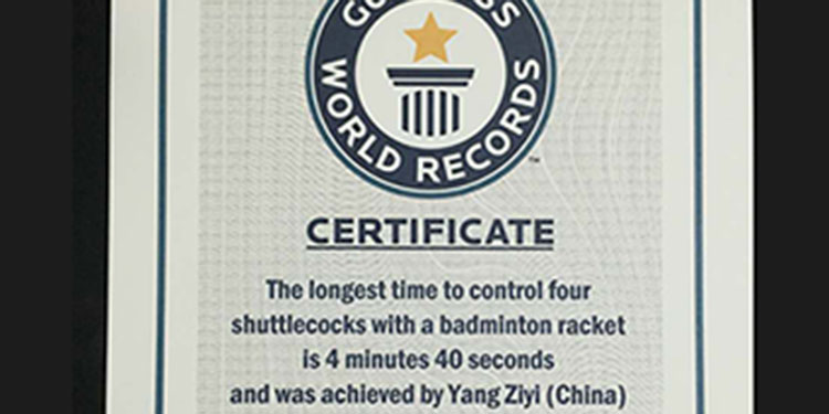 shuttlecock. As well, in order to qualify for a world record, no shuttlecocks