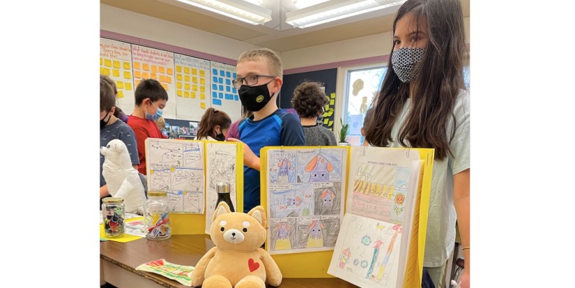 Other students from Grade 3 to 7 nominated their favourite comics for individual awards like “Most Original Story” and “Coolest Character.” Then, the two participating classes held an awards ceremony—which was a new element this year. As part of the ceremony, which Victoria says “unfolded in a beautiful way,” students learned how to present a speech and incorporate feedback.