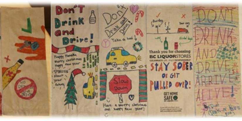 Beginning Dec. 16, the BC Liquor Store at Ironwood Plaza in Richmond will be distributing brown bags with illustrations created by Tomekichi Homma Elementary students to encourage drivers to be responsible this holiday season.