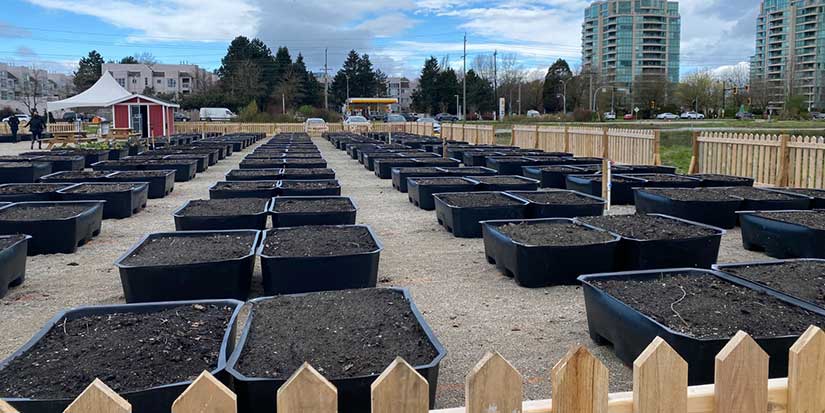 The garden is made up of self-enclosed containers, which were repurposed from an urban farm in Vancouver and filled with Richmond-sourced soil. They are raised off the ground for increased accessibility, with one metre between plots to enable those using wheeled mobility devices to reach from either side.