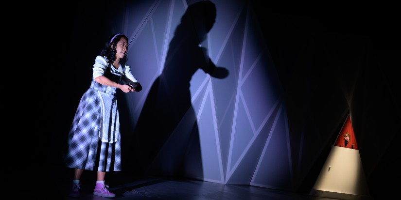 Jamie Nesbitt’s projection design has the presence of a fourth actor, with colourful and imaginative backdrops and moving sequences to fill the stage without using furniture. With so much focus on growing and shrinking, projection helps to achieve clarity.