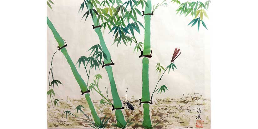 “The two works which I chose for the exhibition are all pastel colour works in Chinese water colour painting. They are Bamboo and Butterfly Chasing Flowers. Both are my own favourite works at (the) moment—I just want to show the beautiful nature to everyone in a Chinese traditional way,” says Yeh. “They bring me (a) peaceful feeling, and I (hope) they can also make others feel calm, too.”