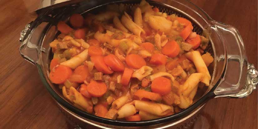 • Boil in a separate pot of water, semi cook 1 cup of macaroni or penne noodles