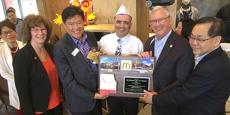 “This takes me back to my roots. It’s a feeling that’s hard to explain. It’s part of the history of McDonald’s, the fabric of McDonald’s,” said Guzzo at the June 21 grand re-opening of the completely rebuilt restaurant on the 50th anniversary of the 1967 opening. The Richmond eatery was McDonald’s first outside the United States.