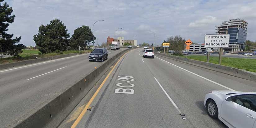 • Lane shifts from Sea Island Way onto the Highway 99 on-ramp