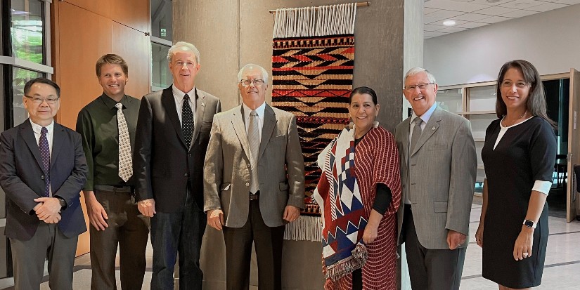 “The city is delighted to have such a remarkable piece of art from Ms. Sparrow on display for everyone to see at city hall,” said Mayor Malcolm Brodie. “Ms. Sparrow’s proud Musqueam tradition and artistic qualities are evident in this blanket, which stands as a sign of the connection that exists between the city and Musqueam people.”