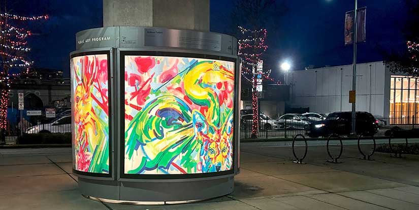 The No. 3 Road Art Columns Program was launched in 2010 as part of the city's commitment to enhance the No. 3 Road streetscape, in partnership with the Appia Group of Companies and InTransit BC. Since then, the program has featured the work of dozens of local artists with two rotating exhibitions a year.