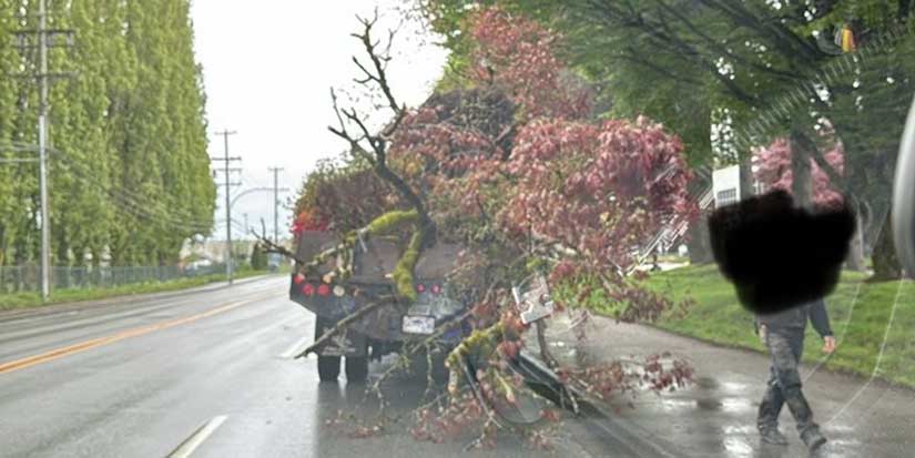 On April 27, a Richmond RCMP Road Safety Unit (RSU) officer was conducting routine patrols on Highway 91 Westbound when he observed a commercial vehicle with large trees loaded on the flat deck. The officer pulled behind the vehicle and noted the load did not appear to be secured.