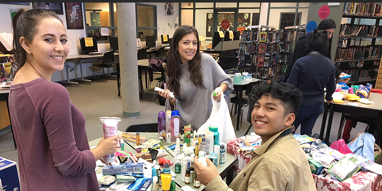less fortunate with toques, gloves, toiletries, crayons, pens, pencils and
